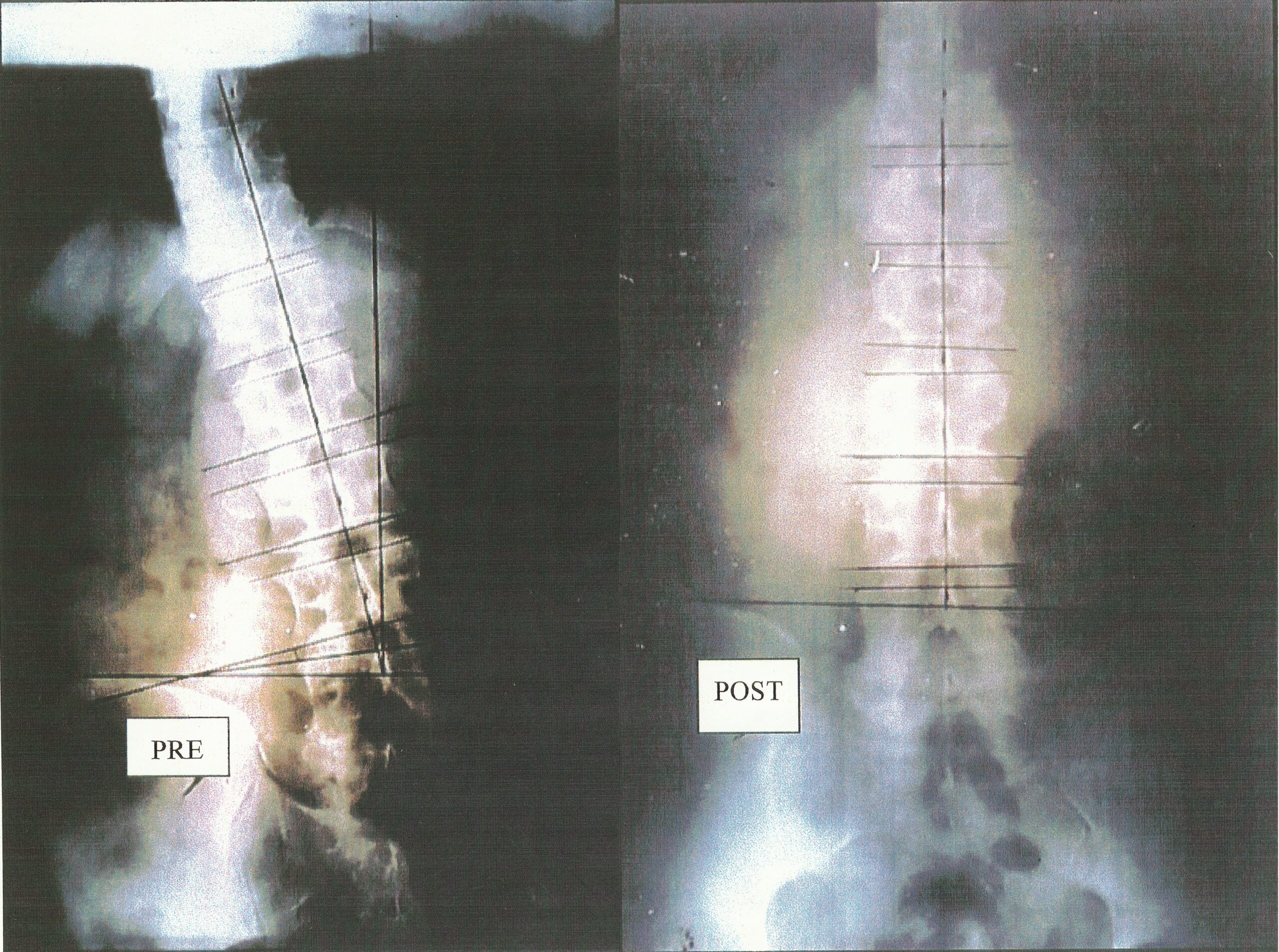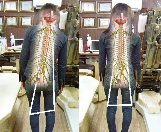 右、施術後では傾いた重心がダイナミックに変化し、腰椎への負担が軽減したことがわかります。
